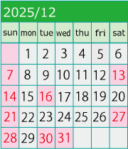 定休日 : 祝日 日曜日 第2・第4土曜日